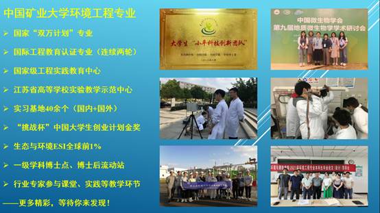 环境工程专业是国家“双万计划”专业、国际工程教育质量认证专业(连续两轮),所属学科进入ESI全球前1%,为环保人才培养提供了丰富广阔的学习、实践、研究和交流平台。