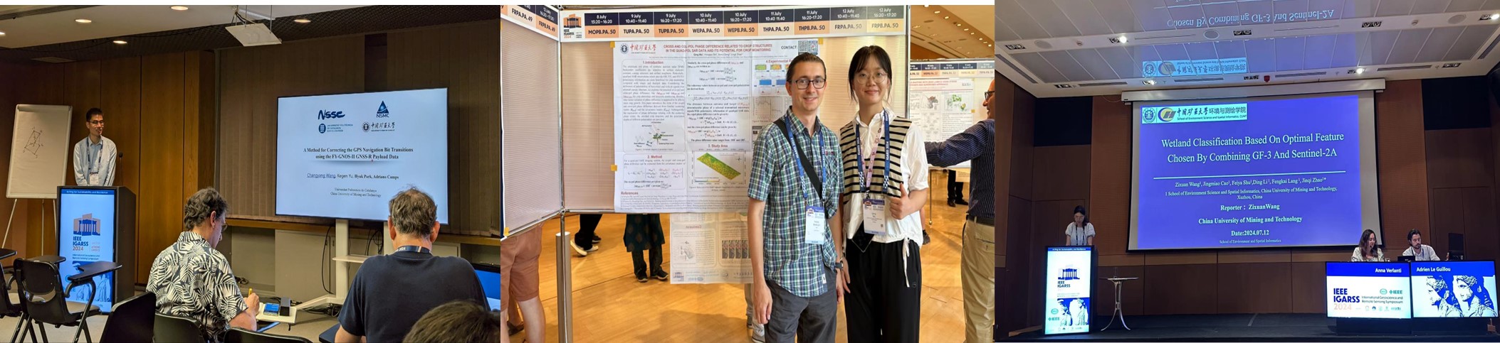 余科根教授担任专题“Advances in GNSS and SoOp Reflectometry: Instruments and Techniques”和专题“Classification and Clustering I”的分会主席,并作题为“GNSS+IR Imaging for Underground Coal mining induce ground subsidence Deformation”和题为“Spaceborne GNSS-R Sea Surface Rainfall Intensity Retrieval Considering the Effects of Wind and Wave”两场报告;郎丰铠副教授作题为“A Novel Ship Detector Based on Attention Mechanism and Upsampling Operator”海报展示;陈宇副教授作题为“Coal Fire Zone Identification by Using an Enhanced Ensemble Learning Model and Multi-model Remote Sensing Data”报告;赵金奇副教授作题为“A Novel Flood Monitoring Method Using Temporal Information and Statistical Characteristics in SAR Images”海报展示。海外联培博士生王昌阳、硕士生王子璇、本科生吴晴作报告及海报展示。