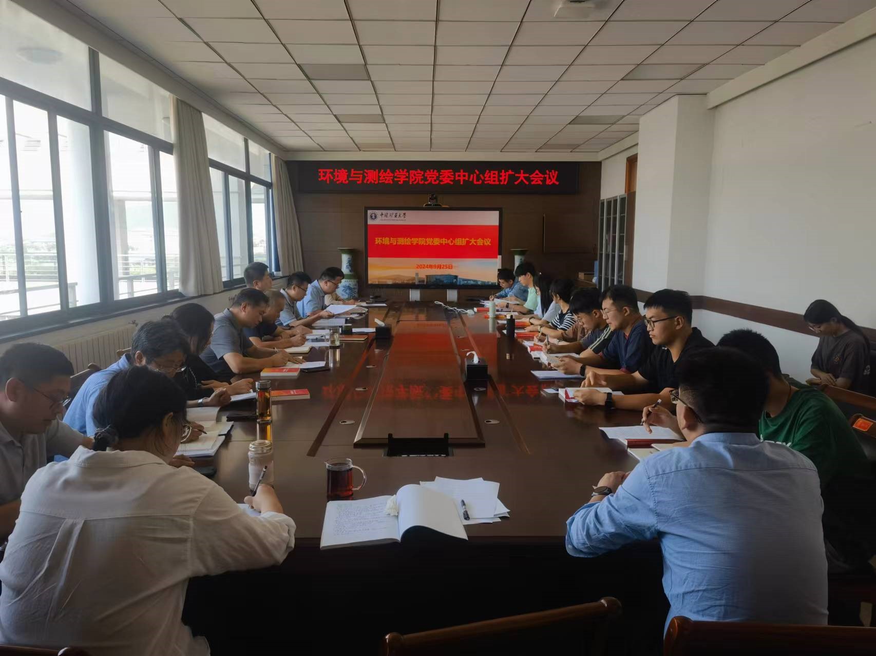 在环A506会议室召开党委理论学习中心组扩大会议,集体学习党的二十届三中全会精神和全国教育大会精神,深入总结党委党纪学习教育,部署推进学院下半年重点工作。会议由院党委书记王守刚主持,院党委理论学习中心组、全院教工和学生党支部书记参加会议。
