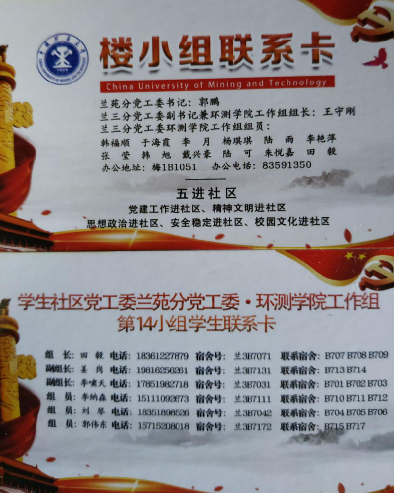 兰三党员工作站站长田毅和各楼小组学生骨干对近期工作开展情况进行了汇报:一是兰三党员工作站已组建完成并已开展相关工作。二是已经完成兰三全部宿舍的走访和学生信息采集。三是已经制作好兰苑分党工委的便捷联系卡,并已分发给同学们。最后针对工作中的重点和难点展开了讨论。