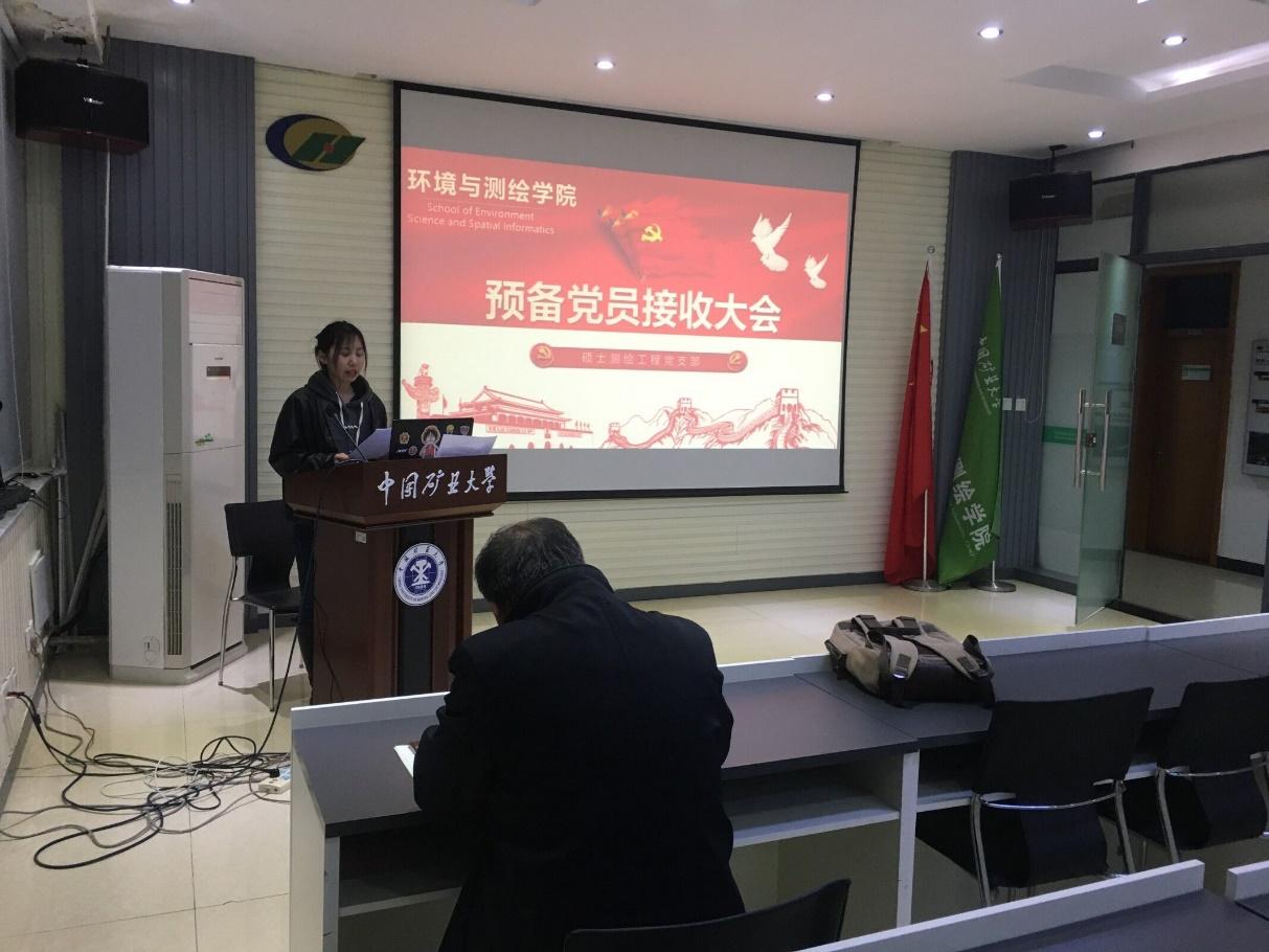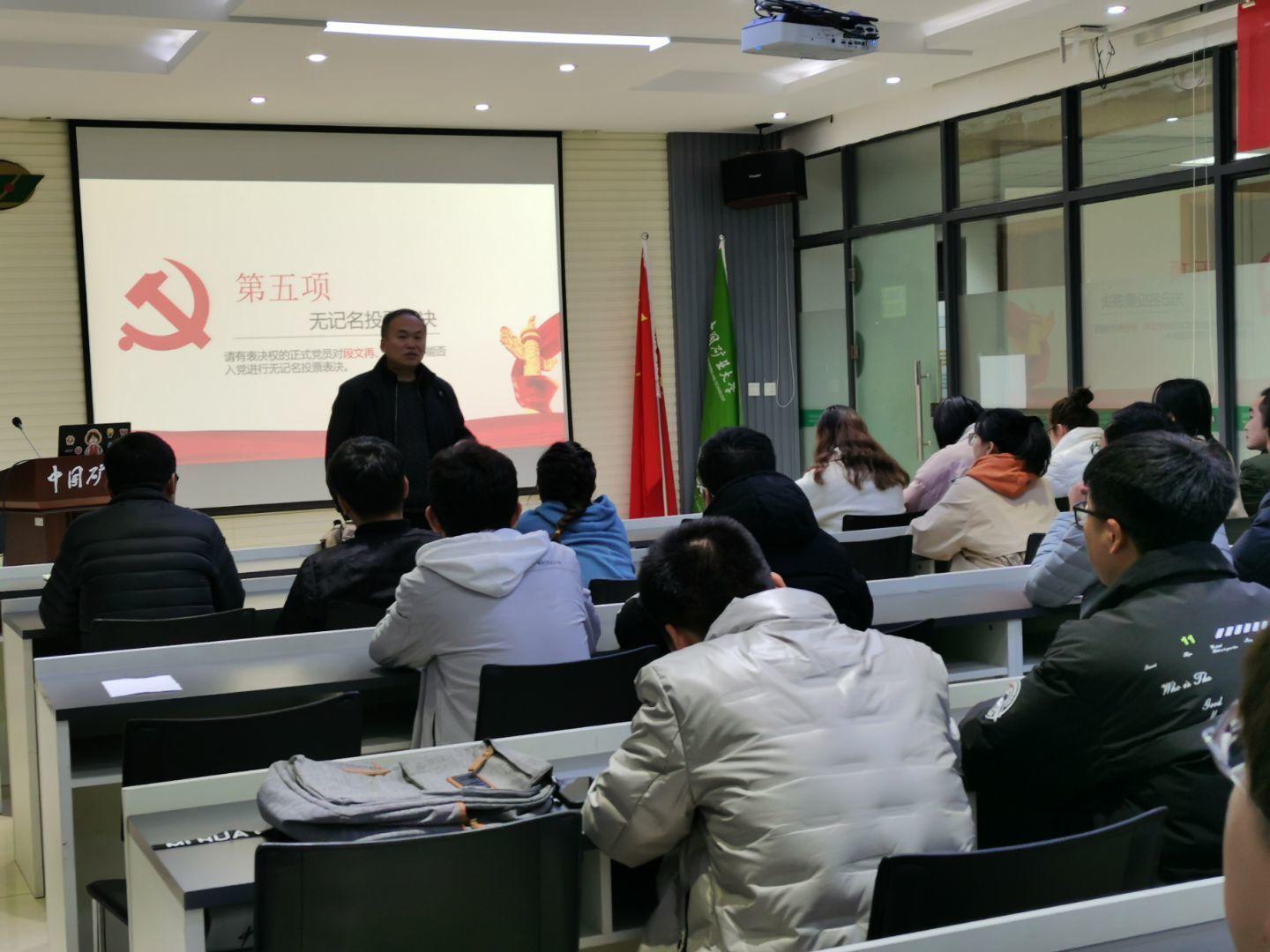 硕士测绘工程党支部于学院楼A512会议室召开了预备党员接收大会,对段文再和许怡两位同志的情况进行了讨论。本次活动由党支部副书记陈丁同志主持,支部31名党员参加,学院党委委员、行政副院长郭东同志莅临指导。