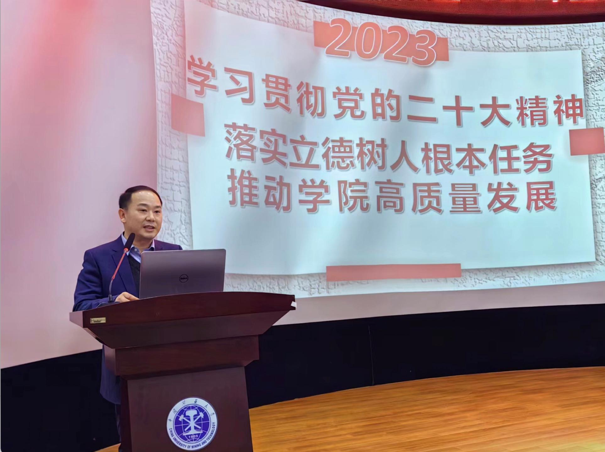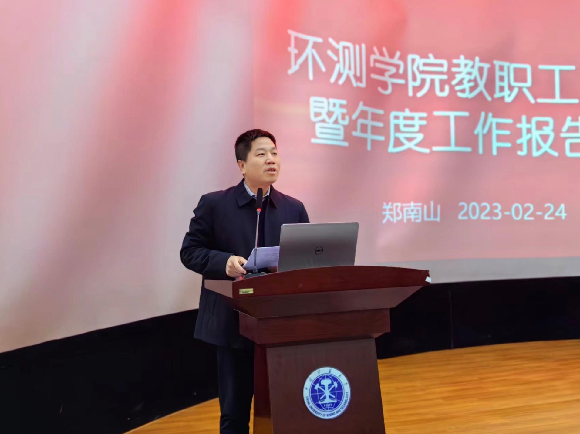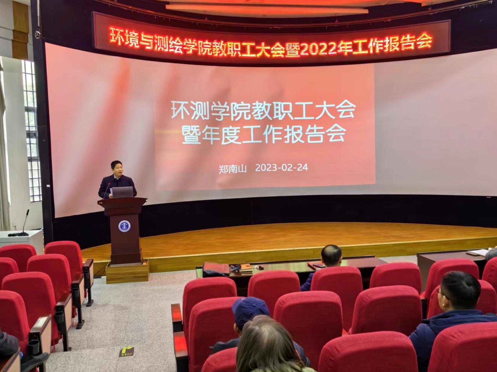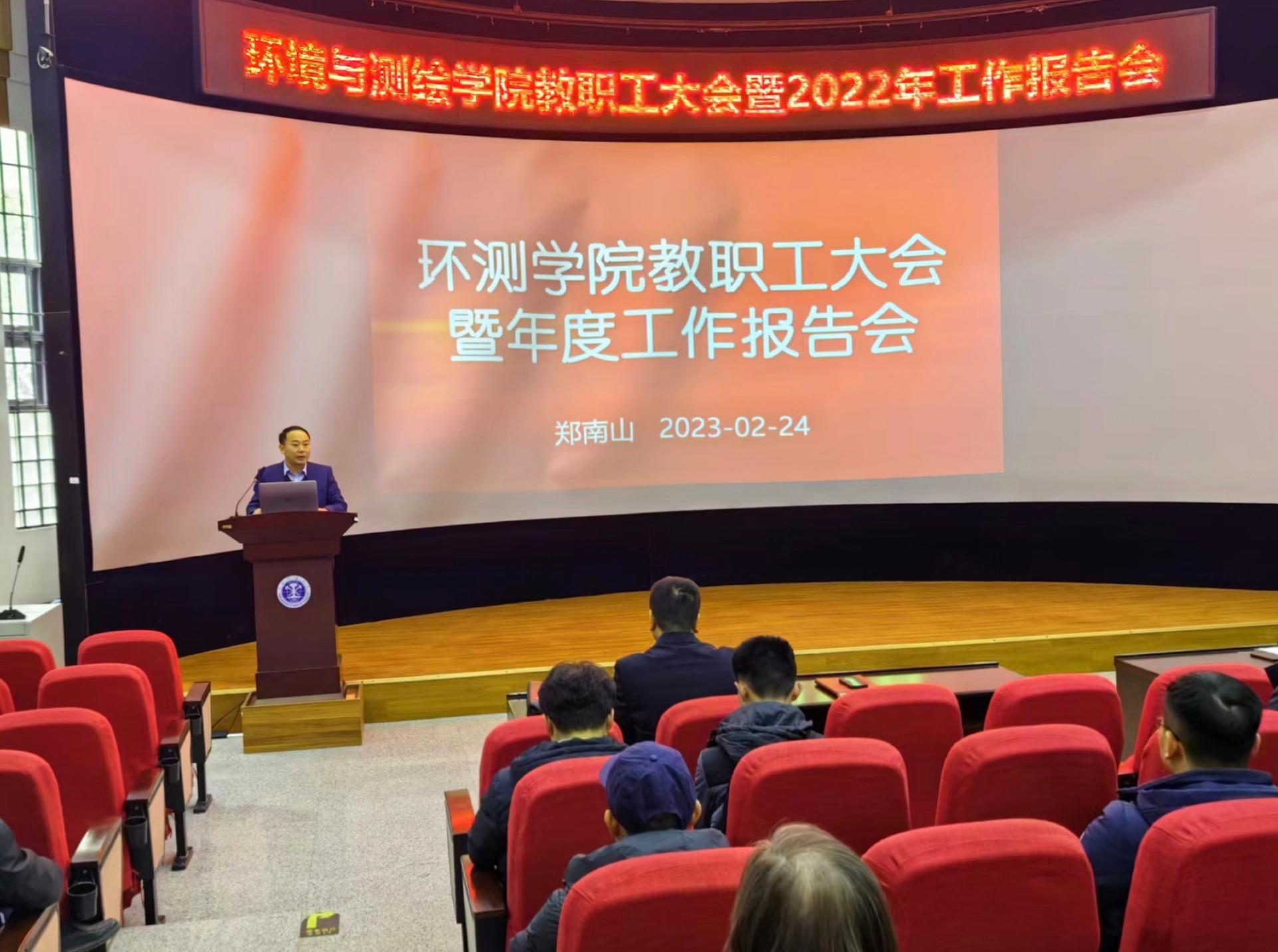 执行院长郑南山向全体与会师生报告了2022年度学院工作,主要从人才培养、科学研究、学科建设、师资队伍、开放办学、党建引领、学生工作、安全服务等方面予以汇报。此外,院党委书记王守刚对本次会议内容进行了总结与补充,并希望全体与会教职工不忘初心、牢记使命,奋发图强,为推动学院发展做出更大贡献。