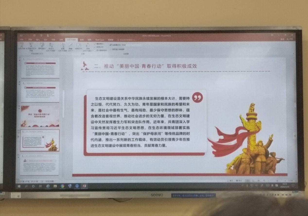 为激励青年践行绿色发展理念,培养保护环境的意识和责任感,同时号召广大青年积极参与到环保事业中来,地理信息科学22-2班团支部、测绘工程22-4班团支部、测绘工程22-2班团支部于5301900在博四B102联合举办了以倡导绿色发展——美丽中国青春行为主题的团日活动。