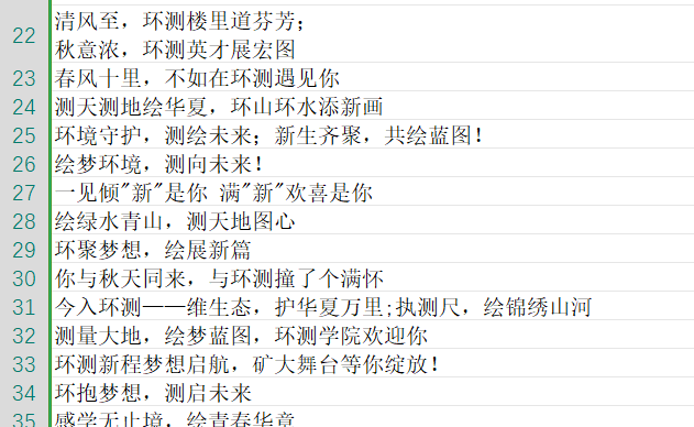 学生会办公室广泛宣传,征集作品,同学们积极报名参加。最后,在评委们的评议下,选出了一些优秀的作品,成功达到了通过征集富有创意、鼓舞人心的迎新标语,展现环测风采,同时激发新生对未来学习生活的无限憧憬与热情的目的。