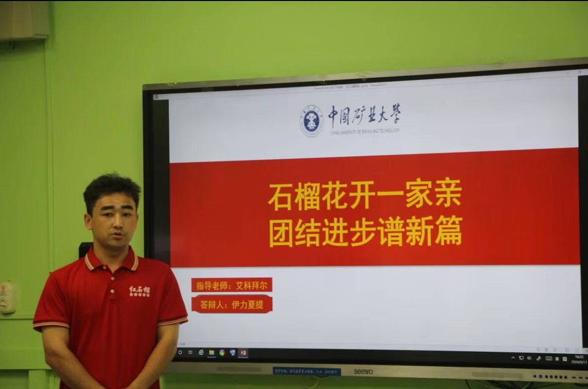 参与本次答辩的团队有红石榴实践团、矿迹换新队、2024大学生世纪环保组织暑期实践团以及“青春映晨光,科技缀夕阳”暑期实践团,首先,红石榴实践团伊力夏提同学讲述了他们团队在习近平新时代中国特色社会主义思想宣传、民族团结、乡村振兴、基层服务和爱国主义教育基地五个大主题下前往新疆开展实践调研活动;其次,矿迹换新队姬甜乐同学介绍了本团队前往苏轼纪念馆、潘安湖池杉林湿地和马庄村开展的五次社会实践活动:然后,来自2024大学生世纪环保组织暑期实践团的罗肖炜同学展示了他们团队前往徐州市环保局和徐州市小宝寻花