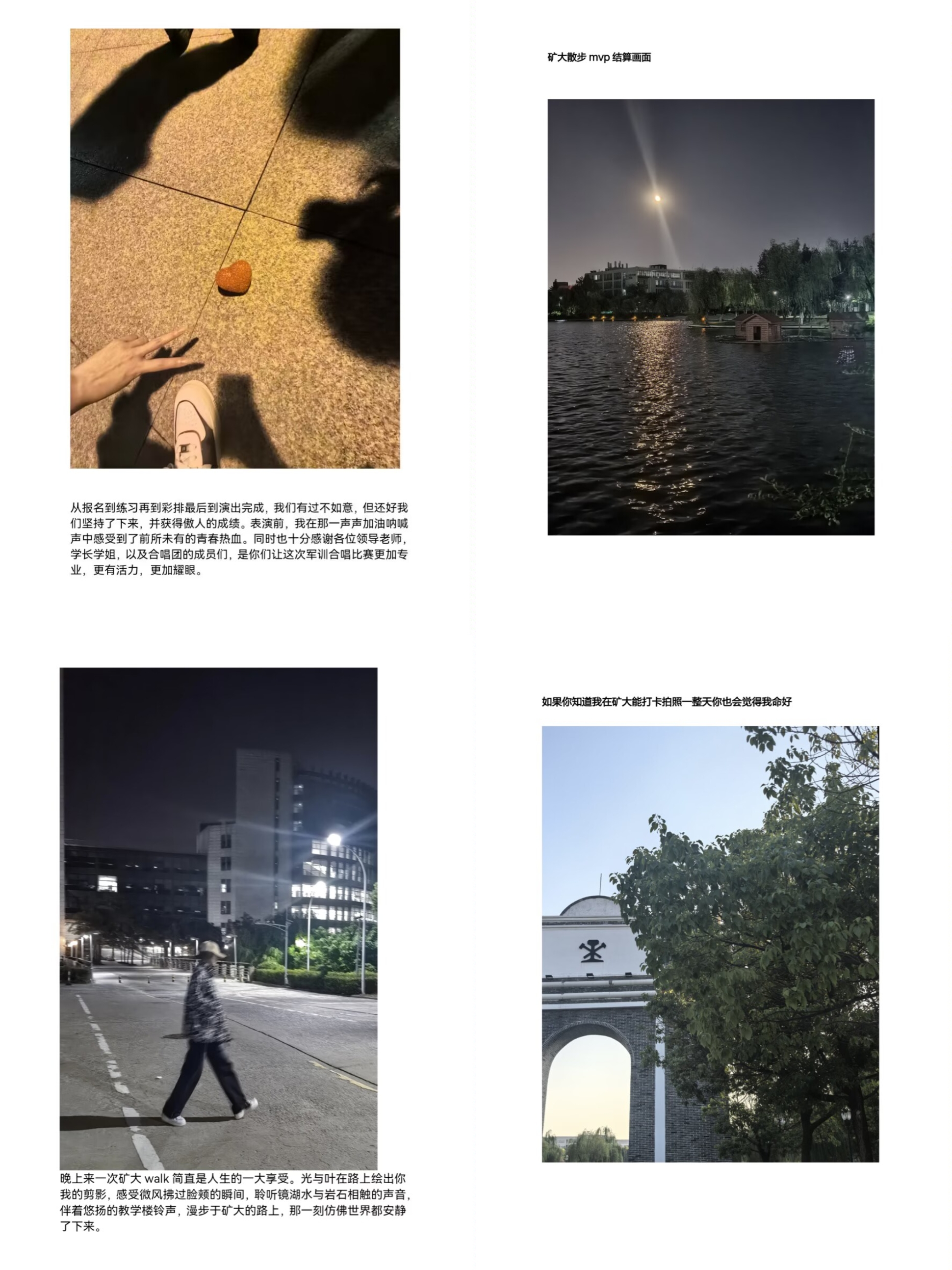 活动期间,新生们探索校园并用文字记录下点点滴滴,熟悉校园环境,增强对矿大文化的认同感和归属感。活动结束后,相关人员对所有参与者的作品进行评分,并进行获奖等级的公示。