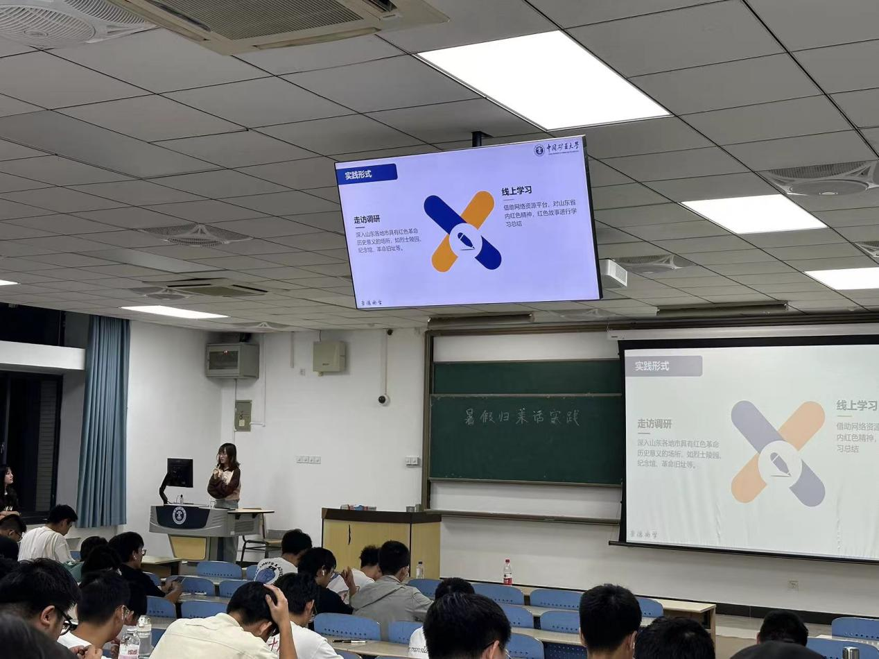 本次活动由遥感班级三位团支书主持,活动中,遥感1班、遥感2班、遥感3班的同学们分别介绍了各自在暑假期间参与的社会实践活动。其中,遥感三班于笑虹同学分享了自己在假期期间参与的“红色攻城狮——齐鲁红色行迹”实践活动。台下的同学们在上台同学的分享中收获颇丰。活动的最后在场的所有人共同观看了其他优秀社会实践分享视频。