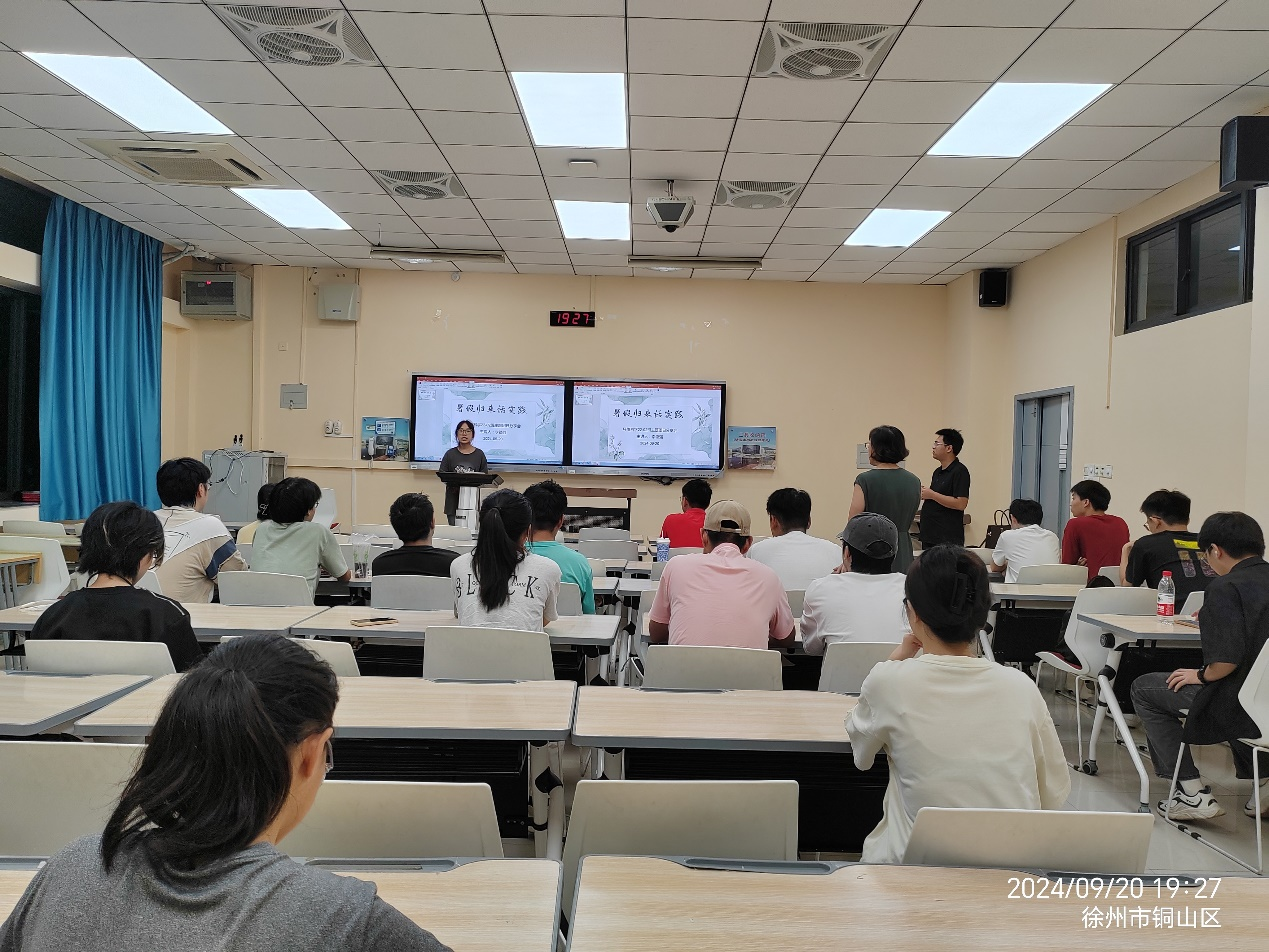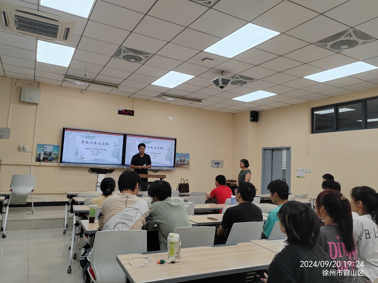 本次团日活动由团日活动李德强同学主持,由四位同学分别上台通过ppt讲解和现场描述讲解他们的社会实践经历和成果。张士博同学分享在图书馆帮助工作人员整理图书,了解到家乡快速的发展;雷颖同学为大家讲解社会实践相关要求,解答大家不清楚的地方;姬甜乐同学分享团中央专项团队“矿迹焕新队”前往马庄村、苏轼纪念馆、潘安湖景区等开展社会实践的经过和实践成果;杨佳乐同学为大家讲解夕阳再晨小分队在泉山区博济老年公寓助老为老的实践过程。至此,团日活动结束,相信通过本次团日活动,同学们对社会实践有了更深入的了解。