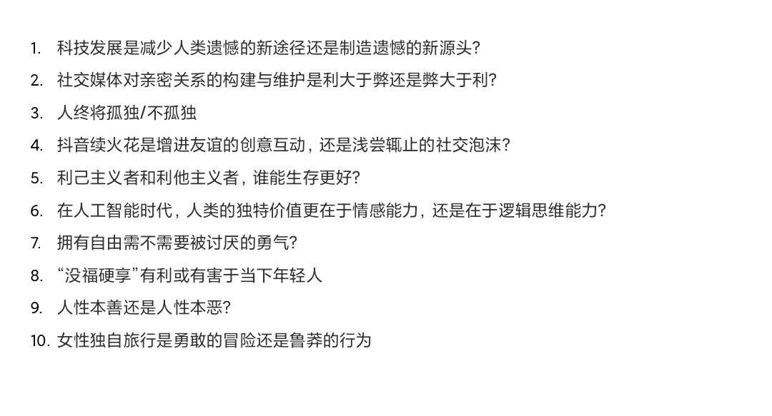 辩题征集结果