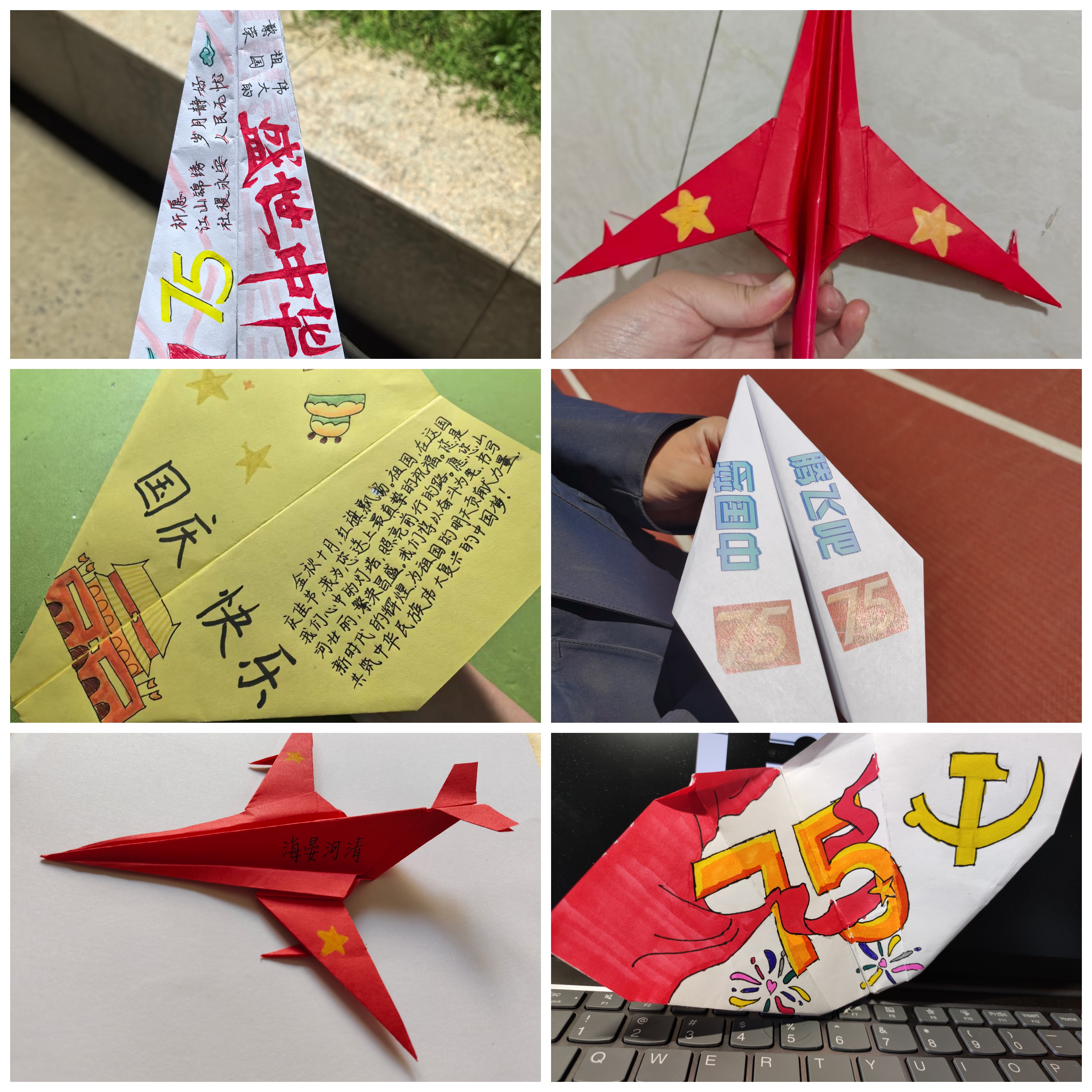 全体学生开展。学生国庆在家期间发挥想象,制作富有国庆特点的纸飞机,绘制国庆主题的图案,并录制放飞纸飞机的视频,配上对祖国母亲祝福的文案,最后由学生会办公室收集参与者的纸飞机照片与视频。