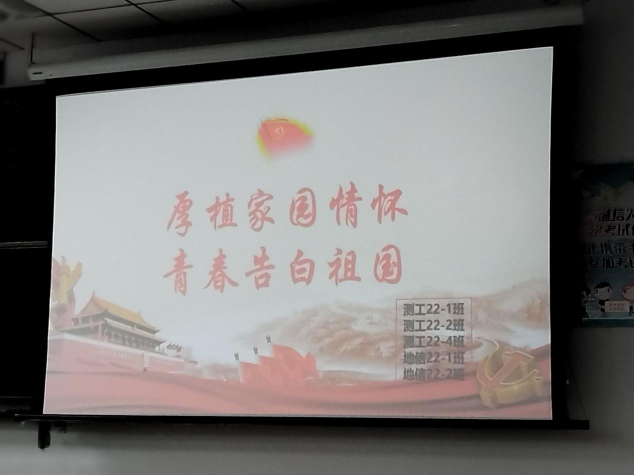 在庆祝新中国成立75周年之际,为了激发广大青年的爱国热情,弘扬爱国主义精神,使广大青年学子牢记革命任务,2024年10月21日下午16:15测绘工程22-2班团支部联合其他四个班级团支部在博一A103召开了“厚植家国情怀,青春告白祖国”主题团日活动。