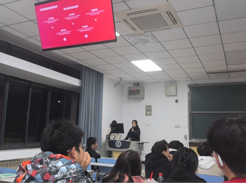 这次活动,同学们积极参与,认真聆听。让同学们在轻松愉快的氛围中接受了一次深刻的思想洗礼,激发了他们的爱国热情和责任感。本次团日活动由环境1班团支书邱紫娟同学和环境2班团支书殷艾兴同学共同主持。活动共分为3个部分。第一部分,首先有两位同学分别以党史视频为序幕,引出家国情怀的主题,由表及里,层层深入地讲述了党的奋斗史。第二部分,同学们对主持人提出的问题进行回答分享。在爱国故事分享中,环境1班、2班的魏伯印同学,柴童馨同学,刘建清同学等分别介绍了自己所了解的爱国故事,如文天祥,邓小平等爱国英雄事迹,生动感人。第三部分,由环境一班的班主任郭加汛老师来进行总结,他介绍了自己所了解的历史事件,让同学们更加的懂得爱国精神的高尚,以及忠于祖国的必要性,要坚定地用自己的青春去告白祖国。