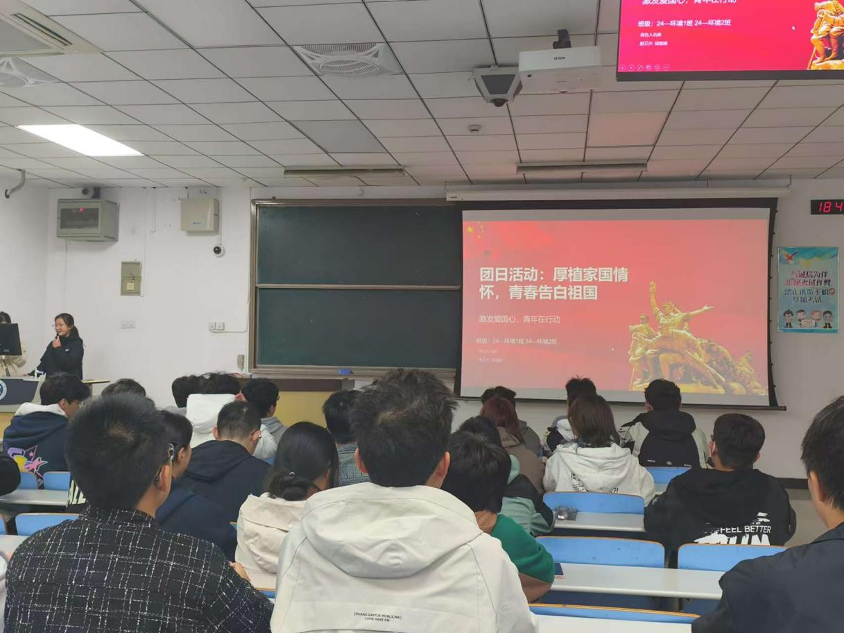 环境24-2班和环境24-1班在博1-B203共同开展“厚植家国情怀,青春告白祖国”主题团日活动。