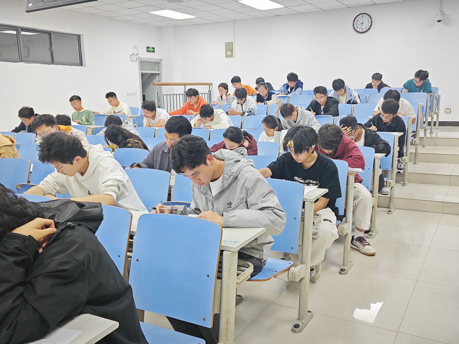 2024级全体新生。模拟考试之前,学习部通过学委群发布了模拟考试的通知,督促各班学委落实。同时,为了保证考试的公正性,邀请各班副班主任监考。考试过程中,同学们按要求落座,认真地进行了高数模拟考试,全力以赴,展示出自己的真实水平。结束后,监考员将试卷统一收起并送往批阅室,由各班学委统一批改,在保证质量的同时以最快速度完成批改,便于同学们及时进行查缺补漏。