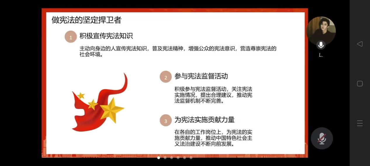 环境科学22-2班团支部在线上开展了以“弘扬宪法精神,坚定制度自信”为主题的团日活动。