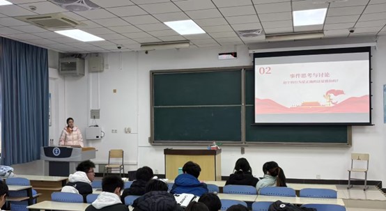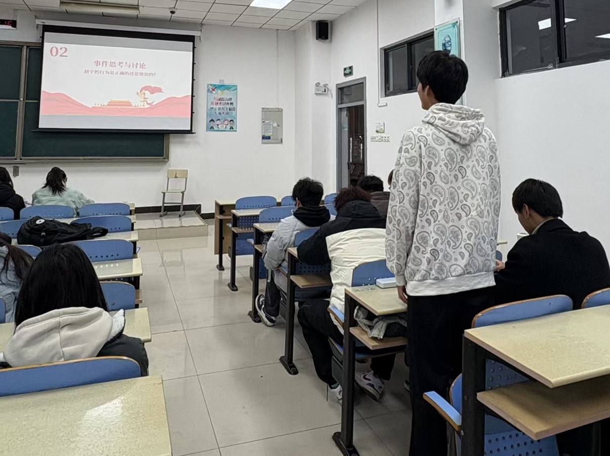 活动由马明灿同学的演讲展开,其演讲激情澎湃,以鲜活实例展现法律在生活各角落的影响力,瞬间点燃同学们对法律探讨的热情。紧接着,赵宇案的深入讲解如同一把钥匙,开启了大家对正当防卫等法律概念的深度思考之门。在小组思考讨论环节,同学们思维碰撞,各小组讨论气氛热烈。有的小组认为赵宇案彰显了法律对正义的支持,也有小组提出在判定正当防卫时证据收集的关键作用。常淮钰,詹振宇作为代表发言时条理清晰,从多维度分享见解,拓宽了全体同学的法律视野。法律知识问答环节将活动推向高潮,题目涉及广泛,同学们积极抢答。这不仅考验了大家的知识积累,更激发了进一步学习法律的渴望。随后,国家宪法日建立意义的讲解让我们深知宪法作为根本大法的至高地位。它确立国家制度,保障公民权利,是法治社会的基石。
