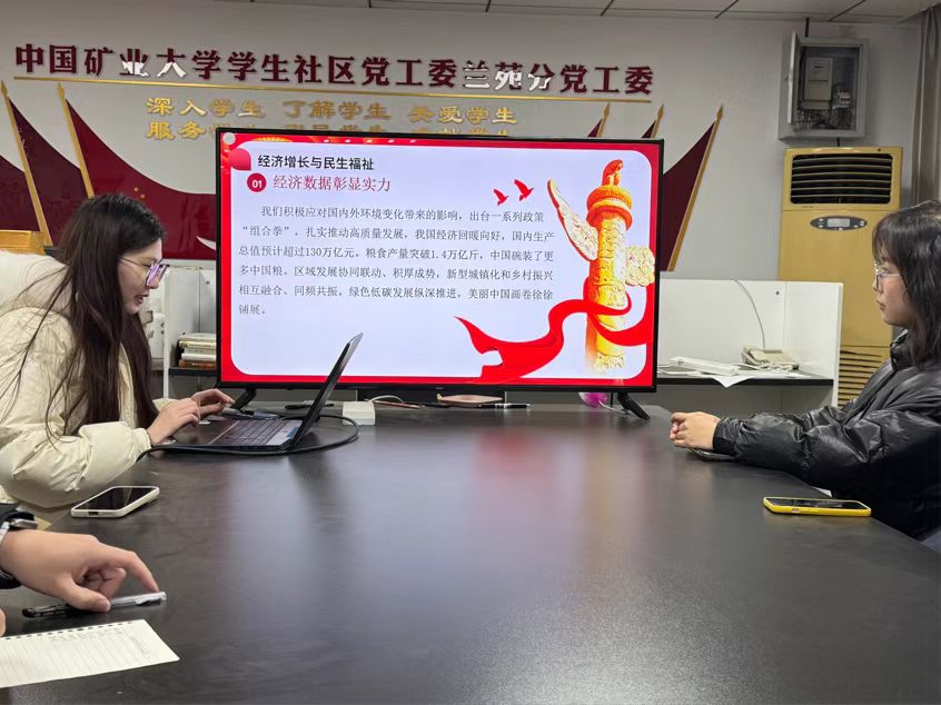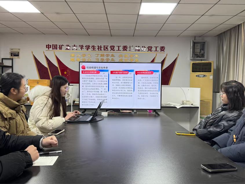 研究生会2024-2025年度第五期理论知识学习活动于梅一党工委B1051顺利开展。本次理论学习由研究生会办公室主任张怡静主持,分别从习近平总书记新春贺词关于2024年国家发展回顾、2025年展望与目标、精神引领与全民参与等方面进行学习。