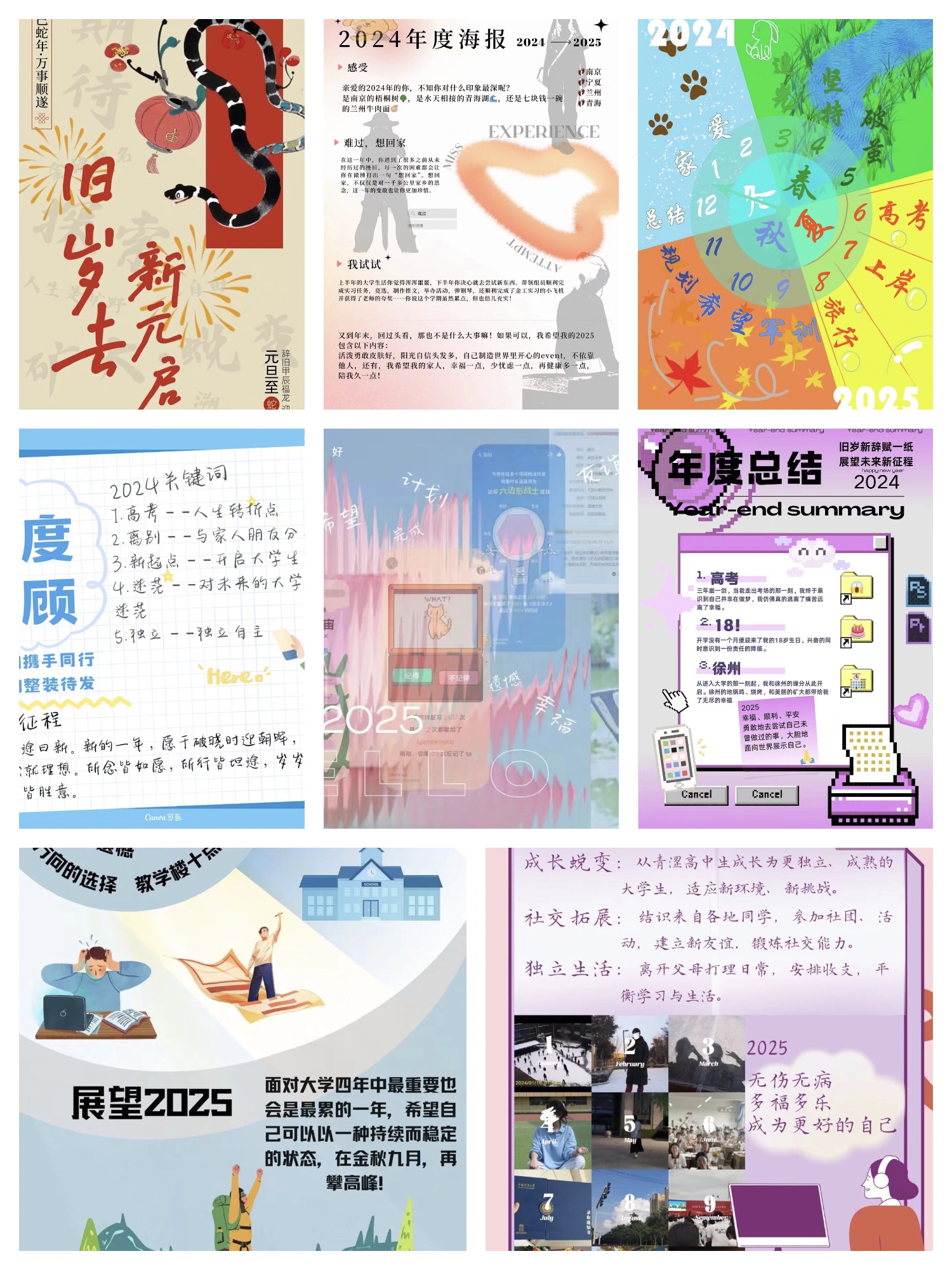 全体学生开展,学生要设计一张自己的2024年度海报。海报上需要包含自己的年度关键词,即概括出符合自己2024年经历的词语,还需插入简短的话语表达对2025年的展望与憧憬。