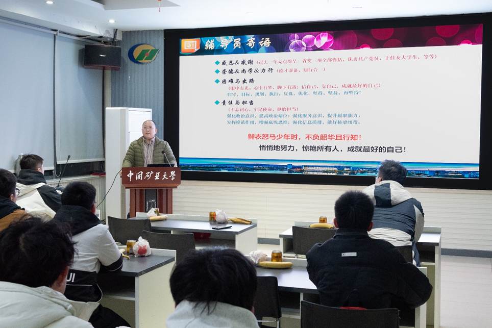 辅导员杨政军老师发表讲话并寄语参会学生。首先,感恩感谢学院各研究生学生社团及学生骨干。感谢大家一直以来对学院研究生各项工作的鼎力支持和辛苦付出。其次,面对日益严峻的就业形势、压力与困难,我们学生未来出路何在?唯有秉承“崇德尚学”的校训,发扬“好学力行,求是创新”的校风,修身养德,早作规划,强化内驱力和执行力,苦练内功,持之以恒地不断复盘与优化,让自己成为德才兼备、综合能力出类拔萃的青年才俊,牢牢地把握未来求职就业、成长成才的主动权。杨老师特别强调,搞好学习是学生的安身立命之本,在学习上要增强积极性、主动性、自觉性,多与导师及课题组成员沟通交流,构建和谐的导学关系、师生关系、同学关系,要勇于“啃”学习科研方面的“硬骨头”,自我加压,争创一流;同时,情商和逆商的培养与提升也至关重要,直接关系到个人未来成长的高度,务必高度重视。再次,院研究生会、党员工作站、学生社区党工委等学生社团和党支部书记、班团等学生骨干,要不忘初心、牢记使命、强化责任、挺膺担当,提高政治意识与政治站位,强化服务意识&提升服务能力,增强底线思维,充分发挥桥梁纽带作用。
