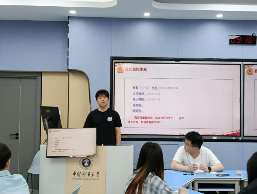 退伍学生阿布杜艾尼·阿卜力米提结合自身经历,深情回顾了在部队期间的难忘岁月。他以鲜活的事例讲述了军人“一不怕苦、二不怕死”的战斗精神,以及在急难险重任务面前“召之即来、来之能战、战之必胜”的坚定信念。他动情地说:“作为一名军人,服从命令是天职,为党奉献是本色。” 退伍学生朱学瑞通过展示他在部队中的生活及训练经历,充分展现了敢打硬仗、勇挑重担的军人作风,号召党员同志积极投身到国防建设中,将自己的青春和热血奉献给祖国的万里边疆。分享活动结束后,24级学生柴童馨作为参会代表发言,他提出这次活动让他更加坚定了向党组织靠拢的决心,要以实际行动接受党组织的考验。