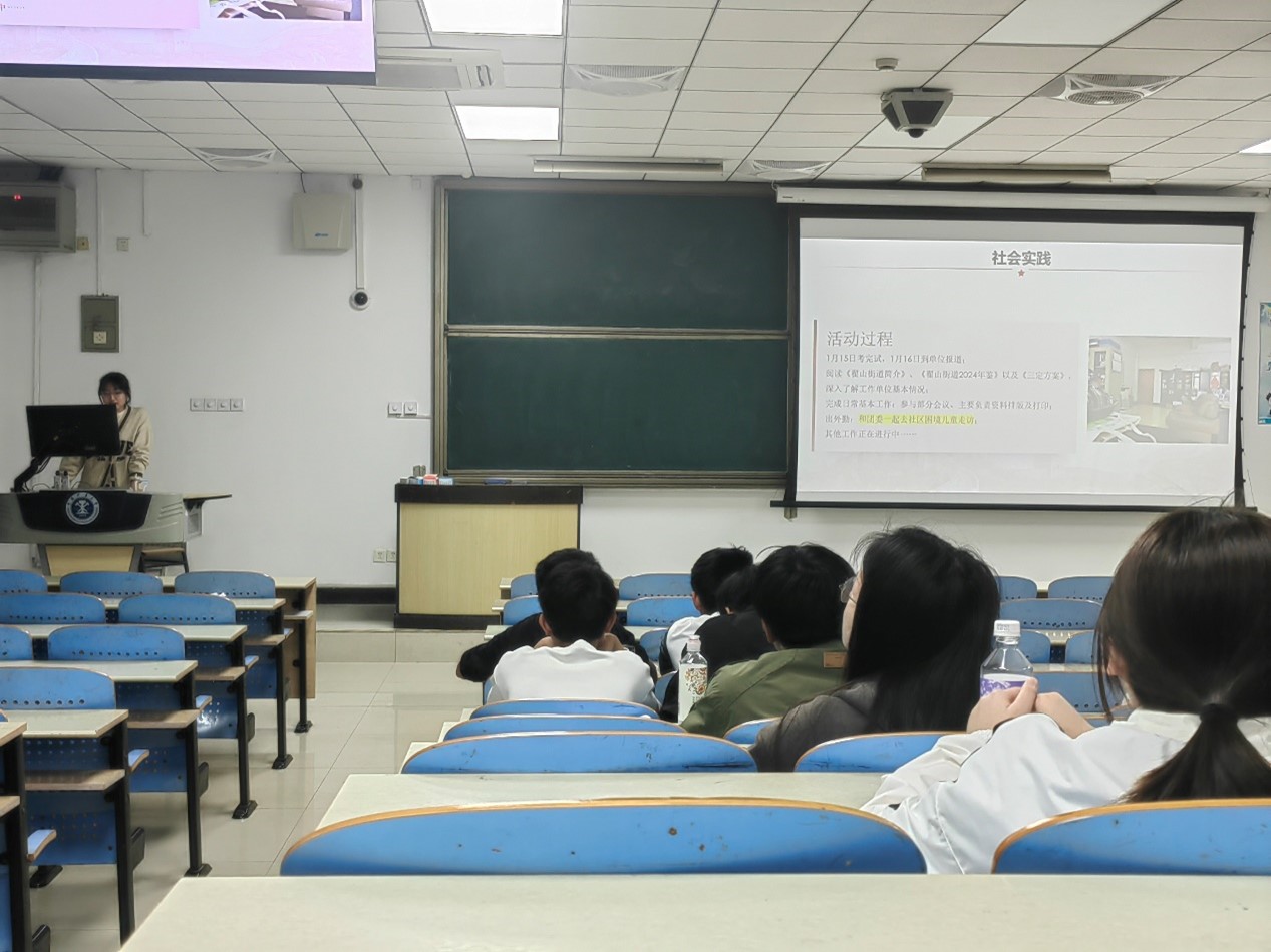 活动伊始,团支书杨苏从青年校团委和支部计划三个方面讲述了活动的背景与意义。接下来是张译文和曹建鑫的实践分享环节。张译文同学介绍了她在街道办事处的工作经验,其中最令她印象深刻的是一次外勤经历。然后,她讲述了在外勤活动中帮助困难儿童后的一些收获。曹建鑫同学讲述了在山西省晋中市张村的实践调研,分享了对张村春节传统文化的研究。在分享结束之后,团支书杨苏利用关键词提炼同学们的感悟,总结实践启示与新发现。最后,杨苏为同学们播放了一个中国青年志愿者的视频,同学们感触颇深。