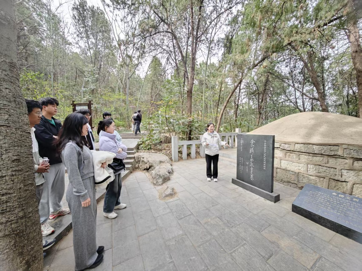 活动中,支部成员分为四个党小组,按计划对云龙山沿线红色景观进行分组讲解。王梓棋、杨佳静、范俊哲等26名党员同志分组担任了不同红色景观的讲解工作,深情讲述革命先烈的英勇事迹。在徐属各县抗战烈士纪念塔前,同志们缅怀抗战中牺牲的英烈,学习他们保家卫国的赤子之心;在津浦铁路抗战殉难员工纪念碑旁,大家回顾铁路工人为支援前线作出的巨大牺牲;行至佘锜义烈士墓和朱大同烈士墓时,党员们肃立默哀,致敬两位烈士为民族解放事业献身的崇高精神。在怀古亭(毛泽东主席登临处),同志们回顾毛主席“绿化荒山,变童山为富山”的重要指示,在湖光山色中远望,体悟伟人号召。活动的最后,全体成员登上了观景台并进行了合影留念。
