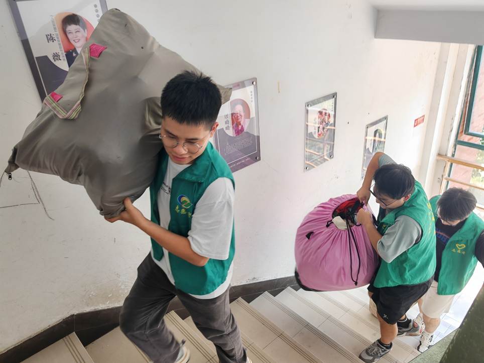 学院志愿者服务队的同学们,克服酷暑高温,根据排班安排及时到岗,每天早出晚归,不辞辛苦地帮助同学们搬运行李并提供力所能及的医疗服务,一次次的上楼下楼致其衣衫汗湿、双眼模糊,虽身体疲惫但内心却无比快乐,笑容洋溢在脸上。向这些可敬可爱的志愿者同学们致敬,衷心地感谢您们!