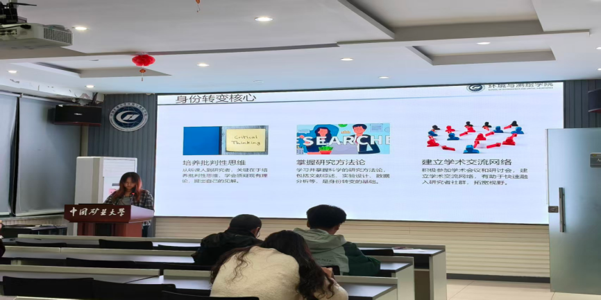 最后分享的葛梦瑶学姐,则从研究者素养的宏观视角带来了她的感悟。她认为,成为一名优秀的研究者,首先要培养批判性思维,敢于质疑既定结论,形成自己的独立见解;其次,扎实的方法论是根基,无论是系统的文献综述还是严谨的实验设计,都必须熟练掌握。她还勉励同学们积极投身学术交流,主动构建科研网络,在思想碰撞中拓宽认知边界。谈及与导师的沟通,她强调应提前明确需求,实现高效对话,并在出现方向偏差时及时调整。最后,她特别提醒大家,务必重视实验安全——规范使用防护装备、熟知紧急设备位置、严格遵守化学品存储规范,并定期参与安全培训,持续提升应急能力。
