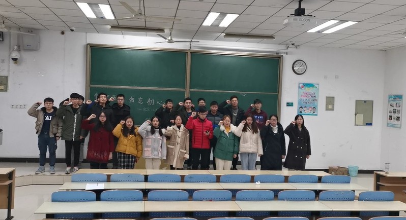活动伊始,团支书向全体同学介绍了一二·九运动的史实事件。随后,在宋鹍鹏同学的带领下,环境17-2班全体同学进行了庄严宣誓。同学们在重温了入团誓词后,坚定了为祖国发展奋力拼搏的决心。最后,全体同学在黑板上签字,以抒发对祖国的热爱与祝福。