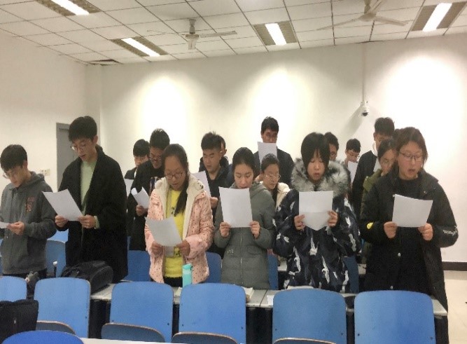 晚8点,活动开始,由团支书孙元星同学介绍了一二·九活动的背景和发展过程。同学们对“一二·九”运动有了更深刻的了解。接着,团支书讲述了在“一二·九”运动中青年学生的爱国举动,这些行动体现了当时青年学生的勇敢和无畏。讲诉结束后,团支书发出提问:作为当代青年学生,我们应该如何用实际行动来传承、发扬“一二·九”精神,引发了同学们的讨论。最后,同学们集体朗诵了“雪花飘进1935”和“青年的觉醒就是中国的觉醒,青年的团结就是中国的团结”这两首诗歌,本次活动在庄重而热烈的气氛中结束。