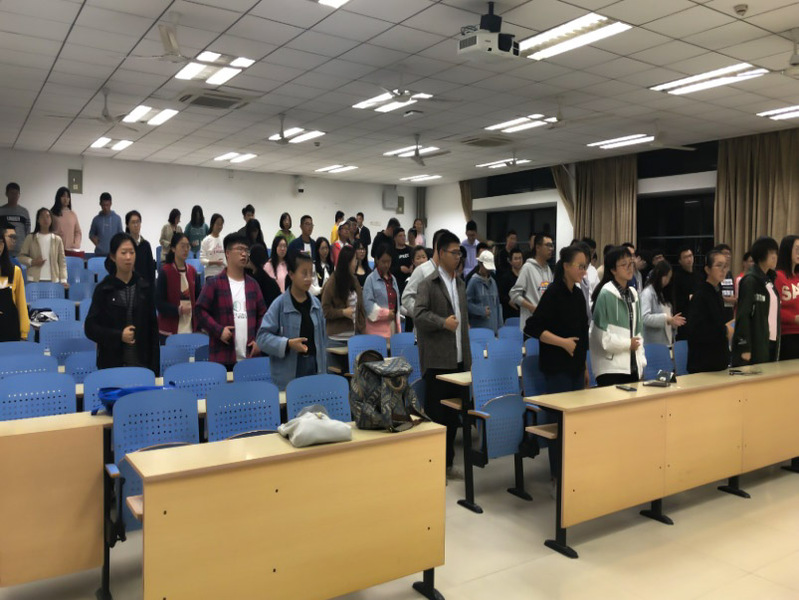 晚21:30,手语快闪表演培训正式开始。报名参加此次活动的100多名志愿者们在助教部干事们的带领下学习了歌曲《起风了》的手语,全体志愿者都积极配合,认真参与其中,耐心学习和巩固每一句歌词所代表的手语动作。同时,助教部的同学们为期达到更好的训练效果,不断纠正志愿者们的动作,反复确认每一处细节。最后,本次为期一小时的手语培训在负责人的总结中接近尾声,希望大家在今后的学习过程中认真练习。