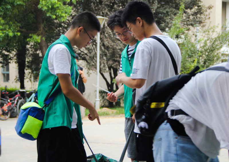 尽管旅途的疲惫还没有褪去,但提前到达学校参与迎新工作的19级新生却自觉穿上了迎新工作人员的“爱心荧光绿”迎新志愿者服装,为其他新生提供服务。在家长休息区,他们不时为家长提供纯净水,并与家长们聊天解闷。一些新生更是在桃苑5号楼门口处等待新生。每当有新生到来时,他们会主动告知入学所需的证件。当得知新生不熟悉宿舍位置时,他们便尽其所能为他们指路或联系相关学长将新生送达宿舍。两位新生志愿者表示,虽然刚到学校便加入了迎新志愿工作,期间也曾遇到一些困难,但助力迎新工作让他们对小宝寻花