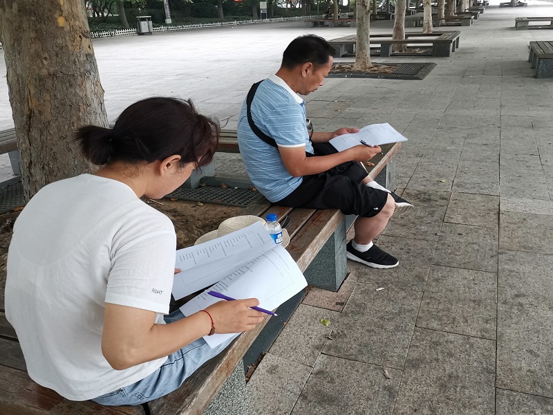上午8点,团队成员在到达金山公园后,向市民们分发问卷,同时在采访一些居民的过程中,小队成员也详细询问了他们这些年来身边的变化,以及他们对目前一些社会热点问题的看法。在交谈实践团成员了解到,其中大多数人认为我国近几年的发展相当迅速;但不可否认的是,日常生活中仍存在不少困扰市民的问题,如房价高、看病难等等。