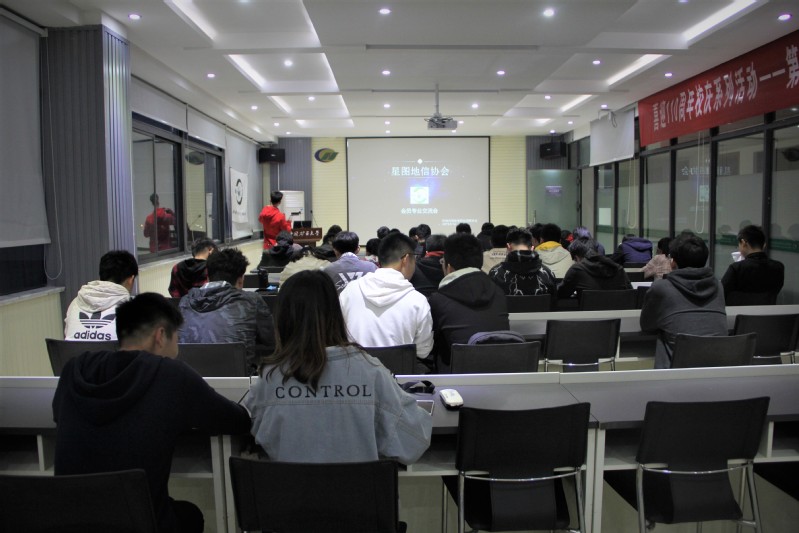 晚上7:00,参加此次交流会的同学准时到达会场,在主持人星图地信协会副会长杨博亚的简单陈述后,本次交流会正式开始。首先,星图地信协会会长任依婷针对部门工作进行了简单介绍,主要包括部门职能、人员分配和部门主办活动等四方面,介绍了有关地信专业方面的竞赛和内容。接下来,协会邀请到已经保研的韩铜同学进行保研经验交流,他表示,大一和大二的同学们应首先注重基础课的学习,成绩是保研的首要条件。之后,他详细介绍对于保研有利的竞赛、申请保研高校的流程以及地信专业方面需要的编程语言,希望对同学们今后的学习给予帮助。最后,李杨同学从工作经验、考研经验、生涯规划和GIS四方面内容向同学们简要陈述地信专业在工作中的使用范围、工作类型和工作前景。此次交流会在袁航同学详细介绍地信专业的编程知识和答疑的过程中接近尾声。
