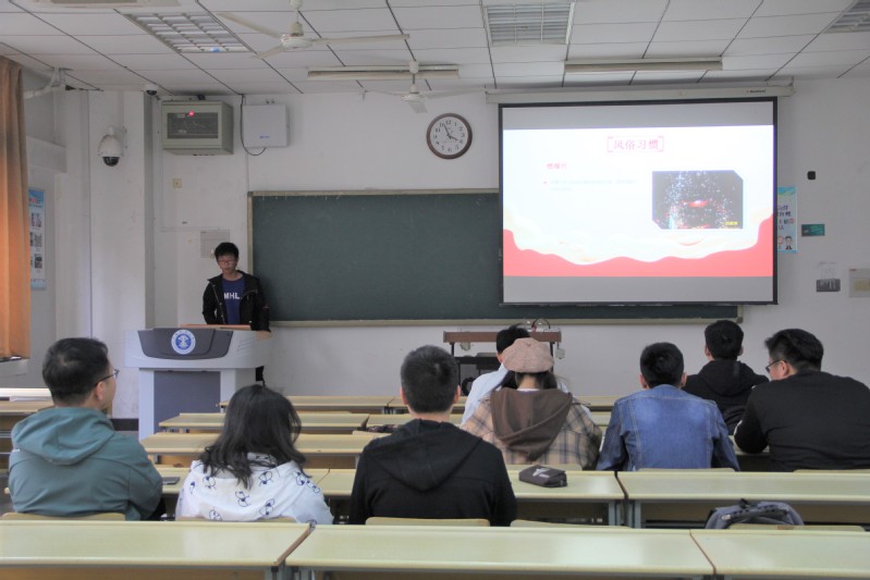 下午4:00,青马班高级班成员准时参加,青马班高级班班长王腾进行主持开展。本班所有成员分为四组进行PPT展示,王腾同学作为第一组代表发言,他主要介绍了组内各个成员家乡的过年风俗习惯,并指出随着人们环保意识与文明程度的提高,人们越来越提倡环保看节、文明看节。今年春节与往常相比,禁止燃放烟花炮竹等污染环境的行为,倡导以灯展、旅途春节等方式文明过节的行为。接着,其他三组代表依次上台展示,让青马班的同学对各个地区的风俗习惯有了基本的认识。随后,王进同学针对今夕春节的不同列举了两条原因,他表示大众旅游的兴起和科技的进步是使春节习俗不同于往日的重要原因。下午5:00,青马班中级成员到达教室参加此次活动,同学们用相同的主题展示出不同的风格。