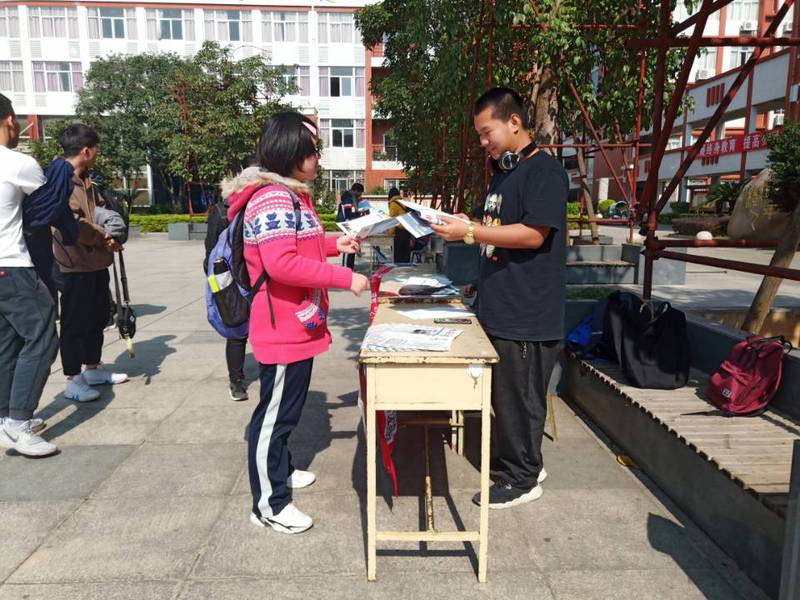 20日中午十二点,矿大宣讲队的同学早早在学校方圆广场上设好宣传点位等待学弟学妹们前来咨询。过往的学弟学妹们多数都会来到平台处听我们的宣讲员做矿大的相关介绍,途中同学们还拍照做相关记录,领取矿大的宣传册,不少对矿大饶有兴趣的同学还会询问很多在矿大就读后的生活与学习问题,在学长学姐的倾情解答下,闽侯一中的学弟学妹们加深了对矿大的认识,有部分甚至在了解后立志把矿大作为高考目标院校,这着实体现了矿大这所百年名校的魅力。