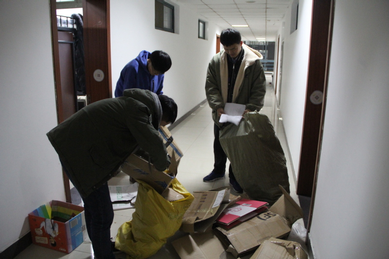 晚九点,学生会生活权益部与青协环保部相关负责人到达各宿舍楼下进行工作安排。随后,负责人员分组对寝室进行扫楼回收废旧物品,包括废瓶子,废纸箱,废旧书本及纸张。负责人员按照废品的类别进行分类,并对于各宿舍所捐物品的情况进行登记。扫楼结束后,相关人员将所收集的废品汇总到宿舍楼下,进行打包。最后,负责人员与废旧物品回收站的工作人员进行交接,获得购置“爱心口罩”的资金。“爱心口罩”将放置到宿舍楼下供同学们使用,帮助同学们防范雾霾,保护身体健康。
