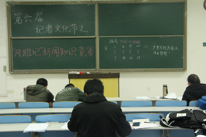 新闻传播中心主办的“风雅记”新闻知识竞赛初赛于博学1号楼B101、C102开展。活动旨在向同学们宣传新闻及记者工作方面的知识,提高其文学素养。