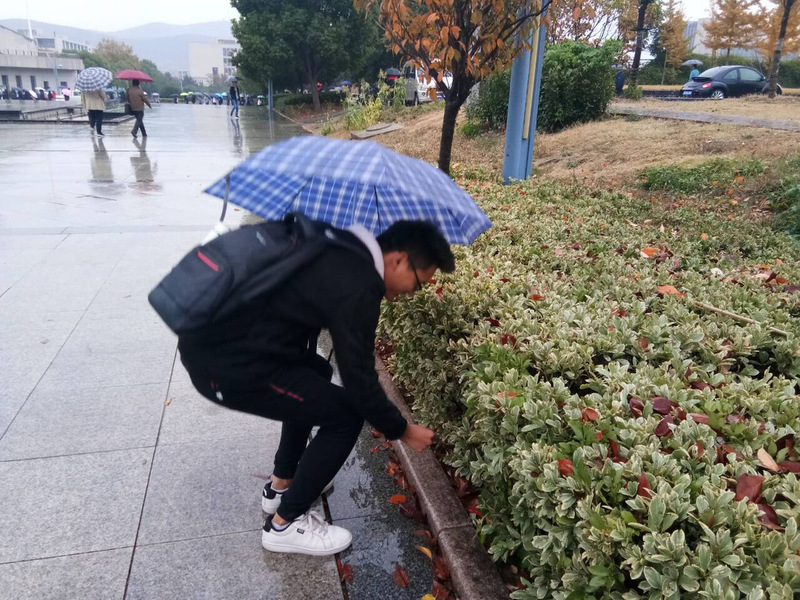 下午四点,同学们自备垃圾袋在南湖体育馆A区门口集合。在进行任务分配后,三人一组来到南湖体育馆附近花丛及道路边进行垃圾清理,对于草丛、花丛中间及拐角处不易清理的地方更是进行了重点美化。由于天气状况的影响,在四点五十以后美化地点转移到体育馆内,进行楼梯拐角与座位下的清理,同时对馆内座位做了设施完整度抽样调查。此外,在活动过程中,部分同学还自发对其他的馆内同学进行了环保知识宣传。