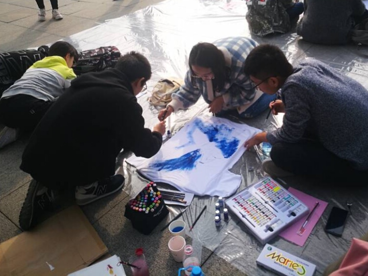 在活动负责人向参赛者申明比赛规则和注意事项后,创意涂鸦T恤省赛初赛正式开始。本次比赛要求参赛者以“追梦四十年,圆梦新时代”为主题,用携带的颜料、画笔和纯白T恤进行创作,共计时间为一个小时。