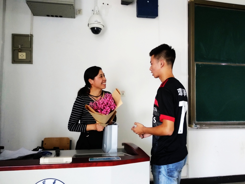 除此之外,各班级也向老师们送上了教师节祝福。同学们在课前自发地起立,并向老师表达了感谢,祝老师们节日快乐。地信17-2班的同学为老师们准备了贺卡与礼物,更是在课后与老师进行了合影留念。