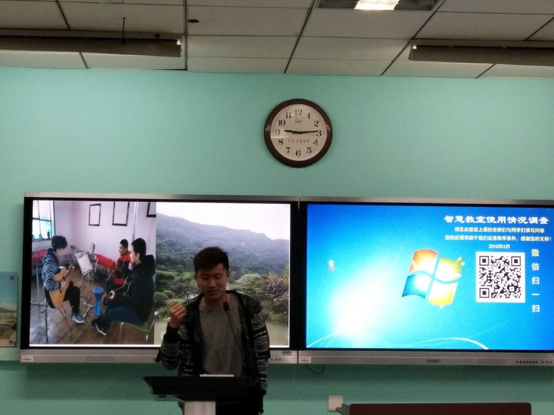 团支书做简要开场白后,同学们依次上台展示自己寒假实践的过程与感想。有的同学参观了烈士博物馆,有的同学参观了名胜古迹,还有的宣传了自己的家乡。每个人在寒假社会实践中收获很多。参与展示的同学们表示作为国家的后继力量,要多在社会中实践,全面的发展自己,变得更强大。