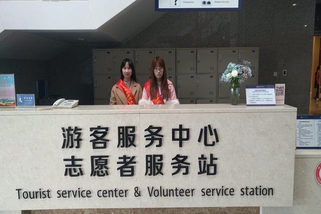 检票区的志愿者主要负责配合博物馆安保人员进行安检方面的工作。还有两位志愿者负责在志愿者服务站为游客们排异解难,以方便游客们的参观游玩。志愿服务结束后,志愿者们在博物馆门前进行了合影留念。