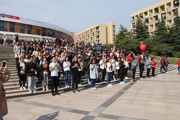 11点50分,进行表演的同学逐渐到达场地集合,并在自己的表演位置上做好了表演准备。12点整,伴随着音乐响起,同学们开始了表演。在《追光者》的歌声中,表演同学动作整齐划一,用自己的双手向观众们讲述着这首歌所表达的情感。在短短的五分钟后,音乐逐渐停止,优美的表演吸引了大量同学驻足观看,现场发出了热烈的掌声。