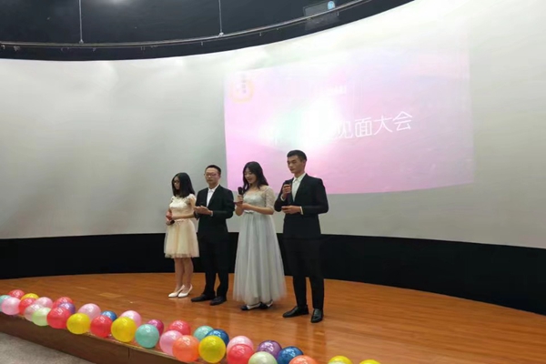 晚7时,见面会在新生的掌声中如时召开。首先第一个环节是团委各部长介绍部门;各部长通过ppt向新生们介绍了本部门的职能、规划、成员等,介绍完毕,各部长首先表达了对新生的欢迎,然后为干事颁发工作证并合影。第二个环节是新生的表演环节,新生们各显才艺表演了独奏,舞蹈,合唱等节目。现场气氛被推向高潮。节目表演后是游戏环节,团委准备了六人四足等游戏,会场所有人都积极参与游戏,此次见面会在众人的欢笑声中进入尾声。最后,所有团委成员进行合照,此次见面会正式结束。