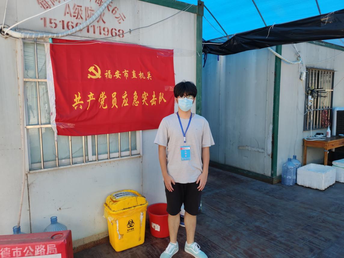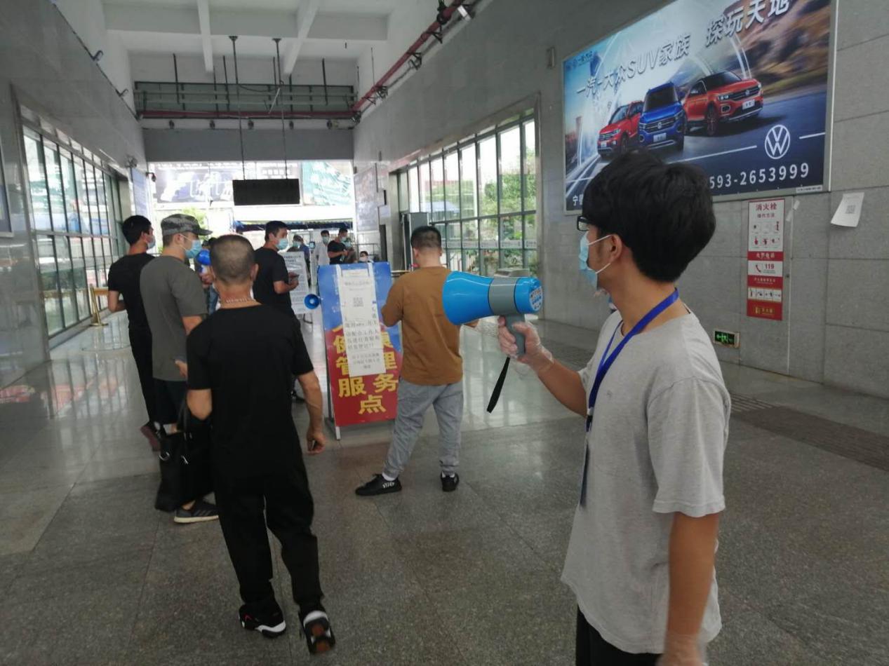 学子宋国华跟随福安市直机关共产党应急突击队,前往福安市动车站开展大学生助力疫情防控志愿活动。