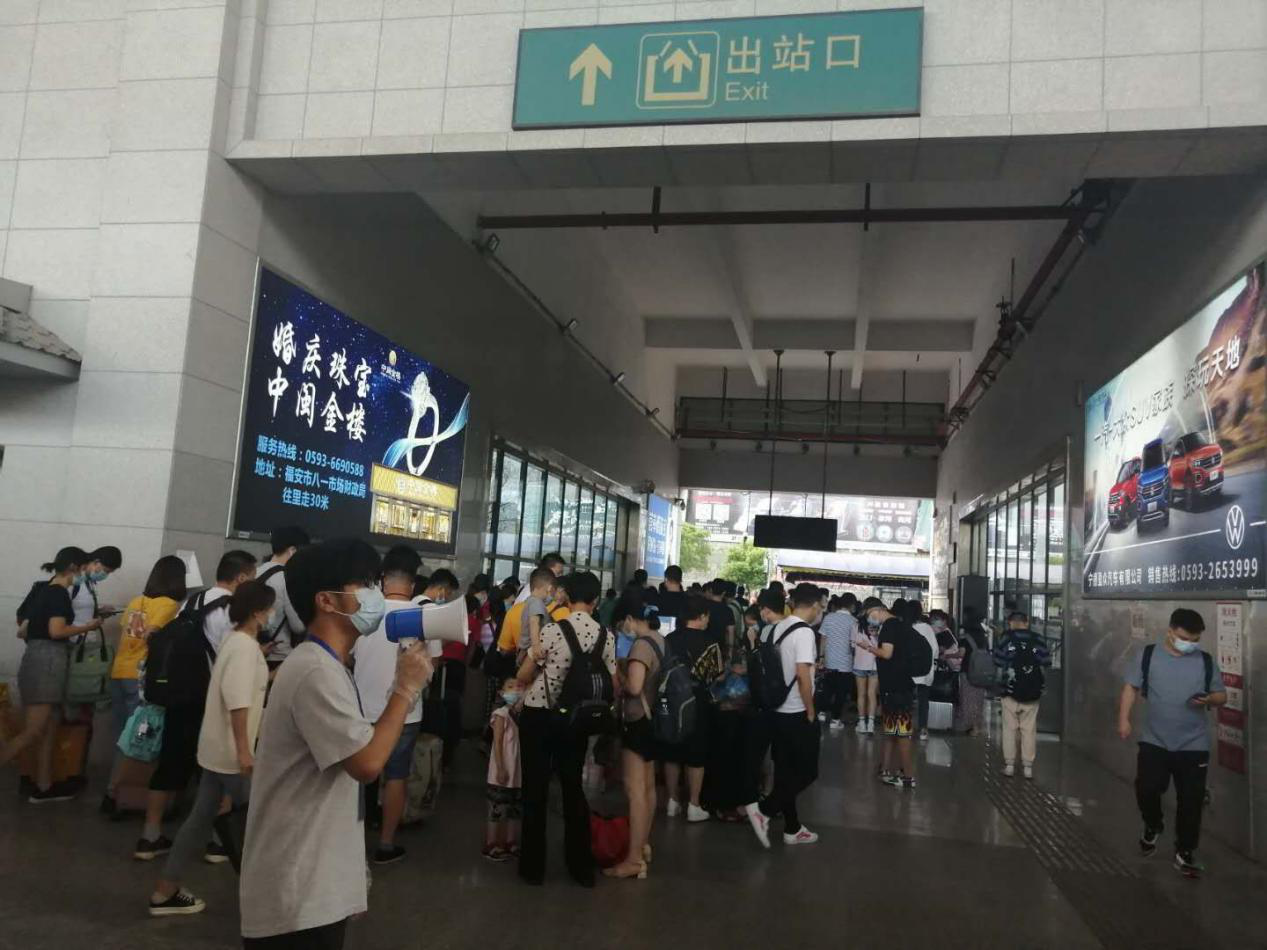 8月21日上午,宋国华在福安市动车站出站口协助引导员指引旅客有序离站。为确保新冠肺炎防疫工作顺利开展,最大程度保障人民群众生命安全和身体健康,宋国华拿着小喇叭对旅客宣传防疫小贴士,帮助返乡人员填报个人健康码,同时对高风险地区及境外返乡人员进行登记。每次送完一批旅客后,宋国华都要更换手套,对手部进行消毒,并准备下一批旅客的到来。随着当日最后一班车到站,宋国华引导完最后一批旅客后,圆满结束了一天的志愿活动。