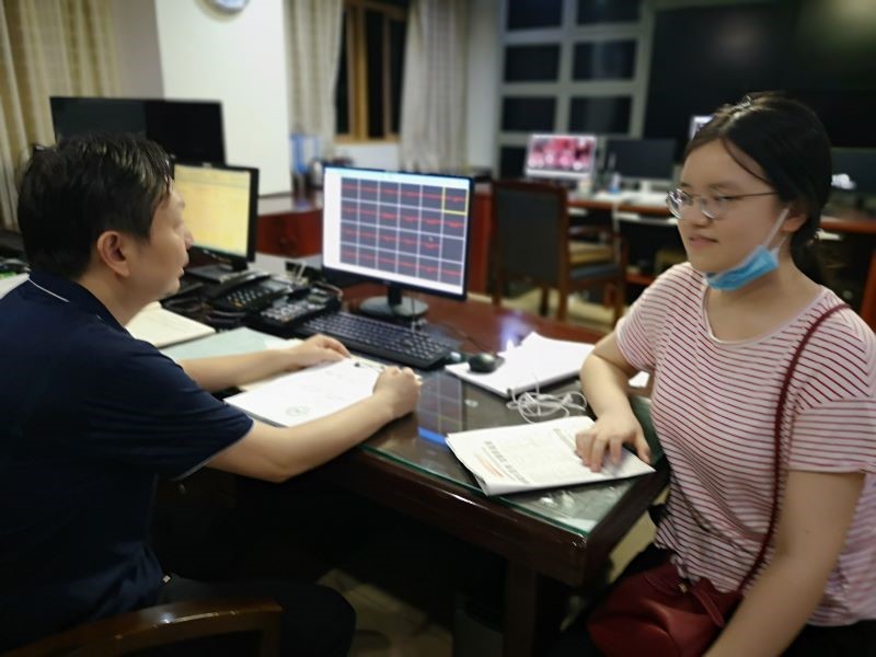 覃川漓同学与公司工作人员交流沟通