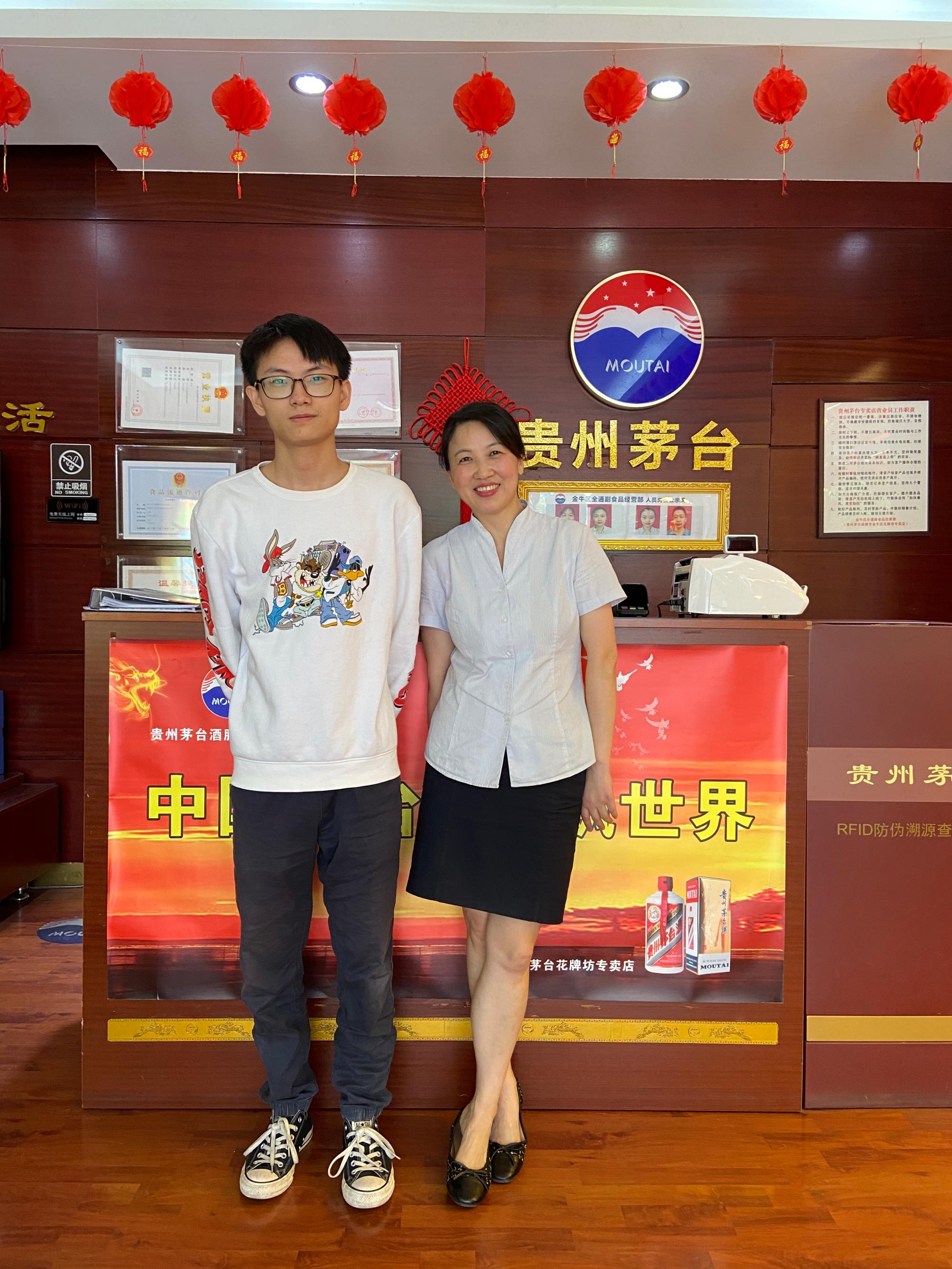 赵恩毅同学进入四川省成都市中国贵州茅台酒有限公司花牌坊门店参加实习,了解相关产业链以及文化背景和社会技能。