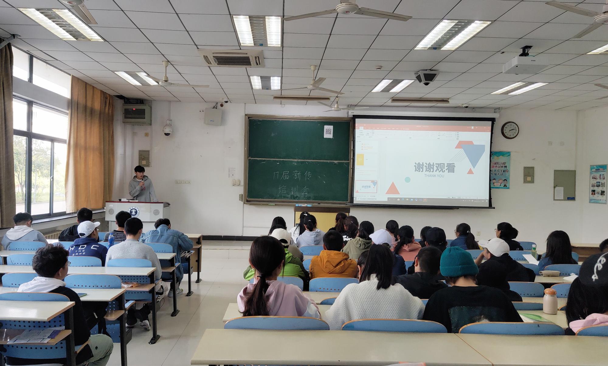 新闻传播中心于博学1号楼A101举办了第17届新传培训会。此次培训内容主要包括新闻写作基础、推文制作、视频、人物采访以及PS基础。在会议开始前,各参会人员便携带纸笔准时到场。